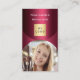 A burgundy arch background. Personalise and add your business logo,photo, name, title and contact information. Add your website url/link to the Qr code. With Facebook and Instagram icons. White text.