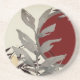 Stylish sandstone coaster features an artistic abstract design in a cream, burgundy and grey colour palette. An artistic abstract design features a watercolor leaf and a geometric circle composition with shades of burgundy and grey with black and gold accents on a creamy ivory background.