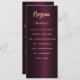 Program and menu card. Personalise and add your name, date and the menu. Burgundy gradientcolored background, golden text.