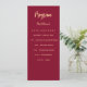 Program and menu card. Personalise and add your name, date and the menu. Burgundy coloured background, golden text.