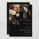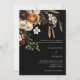 A black background decorated with dark burgundy, beige dusty orange coloured florals. Personalise and add your names and details.