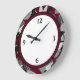 Burgundy Black & White Modern Floral Border Large Clock
