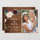 Burgundy Blue Blush Rustic PHOTO Floral Wedding Save The Date