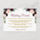 Watercolor Burgundy Blue Floral Wedding Details Insert Card - Blue Back