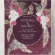 Elegant Dried Palm Leaves, Pampas Grass, orchids and roses all in one Wedding invitations that include the wedding info and RSVP postcard that your guests tear off and and send. Envelopes are not needed. Colours of pink blush, burgundy and shades of green. The background is a mottled deep burgundy. Great for a tropical, boho or evening wedding.