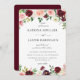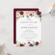 Elegant watercolor burgundy red, blush pink, peach and white floral arrangements, wedding invitation. Card features elegant and modern typography design. Burgundy red solid colour backing.