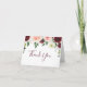 Elegant watercolor flowers and foliage border, wedding thank you card. Floral border features trendy flowers and garden foliage in shades of white, green, blush pink and burgundy red. Pretty "Thank You", in coordinating burgundy colour, script on front. Designed to match our Burgundy Blush Botanical Floral Collection.