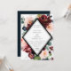 Elegant watercolor floral frame, wedding invitation. Card features beautiful painted garden flowers in shades of burgundy, blush and navy, accented with green leafy foliage and sketched art floral accents. Simple classy typography design style, and coordinating navy blue colour backing.