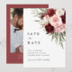 Burgundy Blush Pink Floral Wedding Photo Save The Date