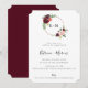 Elegant watercolor florals adorned on rose gold hoop frame, engagement party invitation. Card design features, burgundy and blush flowers and soft greenery. Monogram hoop frame and elegant typography template design. Back of card, shown in burgundy red, can be customised.