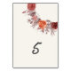Burgundy Boho Rose Floral Pampas Grass Wedding Table Number