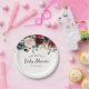 A unique burgundy floral themed set of paper plates tailored specifically to celebrate your future baby shower.