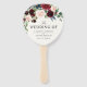 A unique burgundy floral themed set of hand fans tailored specifically to your future wedding. They feature a greeting on the front and your unique wedding details on the reverse side.