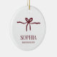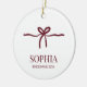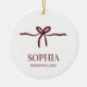 Burgundy Bow Bridesmaid Modern Minimal Name Year Ceramic Tree Decoration