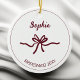 Burgundy Bow White Modern Bridesmaid Name Year Ceramic Tree Decoration
