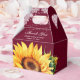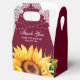 Put your bridal shower/wedding gifts into these romantic rustic burgundy floral favor boxes featuring a sunflower on a burlap background adorned with white floral lace and string lights.