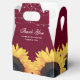 Rustic burgundy burlap and sunflower wedding thank you favour box perfect for a burgundy rustic wedding party inspired by sunflower flowers. Easily personalise this burgundy floral favour box with your event details.