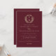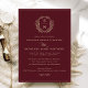 Burgundy Champagne Gold Crest Monogram Wedding Invitation