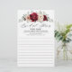 Elegant Burgundy Red, Champagne ivory earthy floral theme bridal shower who am I game featuring elegant bouquet of Burgundy, champagne ivory colour roses peonies and sage green eucalyptus leaves. Please contact me for any help in customisation or if you need any other product with this design.