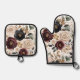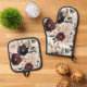 Burgundy Cream Black Floral Oven Mitt & Pot Holder Set