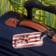 Burgundy Cream Floral Boots Stripes Luggage Tag