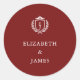 Burgundy Crest Wedding Custom Initials Classic Round Sticker