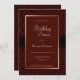 A modern rustic burgundy birthday dinner party invitation with a rich black and burgundy damask frame which has been modernised with a metallic copper/rose gold border.