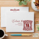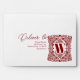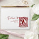 This envelope design features a luxurious and fully personalised style. At its heart is an ornate damask frame adorned with flowing floral motifs and delicate heart details, within which a bold alphabet letter rests, giving the piece a regal identity. The deep burgundy tones contrast beautifully with the light background, creating a rich, sophisticated finish. The damask pattern brings a sense of timeless tradition, while the hearts add a romantic touch, making the overall design elegant and warm.
