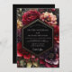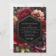 This design features a rich tapestry of deep red and burgundy blossoms, accented with touches of golden yellow and muted purple. The opulent floral arrangement evokes a sense of dark romance and dramatic elegance. Lush greenery intertwines with the dense petals, creating a captivating visual.