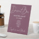 Measuring [dimensions], this table sign is an ideal size for placing on your dessert table or buffet, ensuring that it is easily visible to your guests. The combination of the burgundy background and white text creates a beautiful contrast, making the sign an eye-catching addition to your wedding reception.