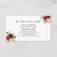 This timeless, romantic design features a burgundy watercolor floral bouquet with feather and botanical accents. I applied a faux foil square outline within the card to pull this design together. Use these invitation insert cards to invite baby shower guests to bring a pack of diapers for a chance to win a prize at the shower.