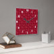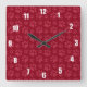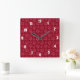Burgundy dog paw print pattern square wall clock