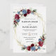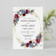 Bring a touch of luxury to your celebration with this gold foil wedding invitation featuring rich burgundy florals, soft dusty blue blooms, and delicate eucalyptus. The geometric frame and watercolor botanicals create a refined and romantic look that suits evening weddings, elegant estates, and timeless ceremonies. Personalize the wording easily to create a beautiful keepsake your guests will admire.