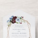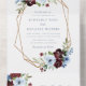A Floral design with a geometric frame with text in the middle. The burgundy dusty blue flowers are perfect for your summer and fall wedding themes. You can change the wording, text size, colour and font on this template.