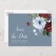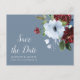 burgundy dusty blue floral save the date postcard