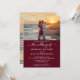 Elegant script photo wedding invitation boho burgundy with two photos, simple black on white.