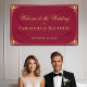 Am elegant wedding welcome banner with a vintage air, with burgundy and gold wedding colours.