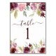 Burgundy Elegant Watercolor Floral Wedding Table Number