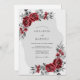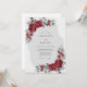 This elegant design features deep burgundy roses paired with soft charcoal and grey eucalyptus leaves. The watercolor style creates a romantic and moody atmosphere, perfect for a sophisticated winter event. Bold floral clusters anchor the composition, balancing rich crimson tones with muted foliage.