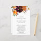 Rustic boho floral wedding program featuring a watercolor painted floral bouquet with warm and earthy shades of burnt orange, terracotta and deep burgundy along with some greenery. This elegant program with the rich shades of autumn is great for a fall wedding. These cheap wedding programs are printed on sheets of paper for a budget friendly option.