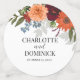 Simple modern design features autumn garden florals in colours of burgundy, orange and green leaves with customisable text. Personalise the template with your desired wedding details, fonts etc.