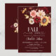 Burgundy Fall In Love Sunflowers Bridal Shower Invitation. Rustic and elegant bridal shower invitation featuring hand painted watercolor burgundy red, brown, beige and blush pink flowers and fall leaves bouquet and burgundy colour in the background. Please get in touch via chat if you need customisation or matching items.