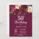 Burgundy Floral 50th Birthday Party Invitation for women. Burgundy Red Birthday Party Invite. Burgundy Watercolor Floral Flower. 13th 15th 16th 18th 20th 21st 30th 40th 50th 60th 70th 80th 90th 100th. For further customisation, please click the "Customise it" button and use our design tool to modify this template.
