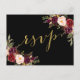 Burgundy Floral Black Faux Gold Foil Wedding RSVP Invitation Postcard