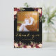 Burgundy Floral Black Gold Photo Wedding Thank You Card