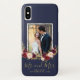Burgundy Floral Blue Mr and Mrs Wedding Photo Case-Mate iPhone Case