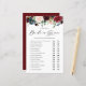 Burgundy Floral Bride or Groom Bridal Shower Game