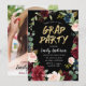 Burgundy floral brush script blac graduation party invitation