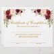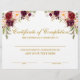 Professional, Customisable, Certificate of Completion. Great for classes, training courses, schools, business courses and more. Personalise with your custom text. Elegant Watercolor Burgundy Marsala Floral with burgundy roses, pink roses and botanical greenery. Gold Script.