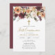 Burgundy Floral First Communion Invitation